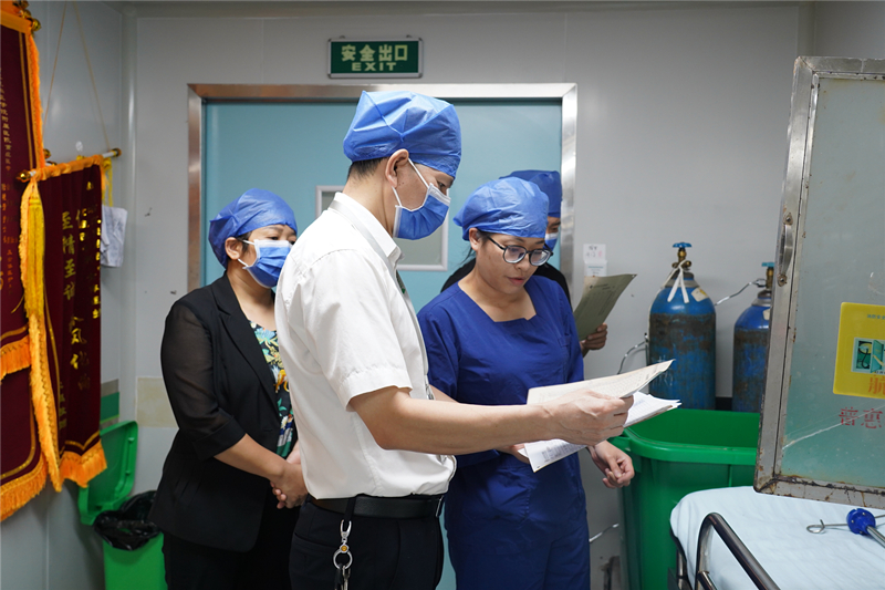 督查期间,专家组先后来到右医附院总院区药房中心、高压氧舱、病房、重症医学科等进行实地检查,通过查看台账、实地检查等方式对右医附院安全生产的制度建设、后勤保障、消防安全、治安保卫以及医疗安全等内容进行仔细检查,认真听取应急值班值守情况介绍,详细了解右医附院安全生产各项工作举措落实情况,重点督促指导右医附院建立健全安全责任体系、落实主要负责人作为第一责任人责任及健全完善并落实基本安全生产规章制度、建立安全风险分级管控和隐患排查治理双重预防机制等情况。督查组在巡查期间,充分肯定了右医附院安全生产和消防安全管理工作,同时指出了存在问题并提出整改意见和建议。