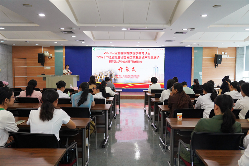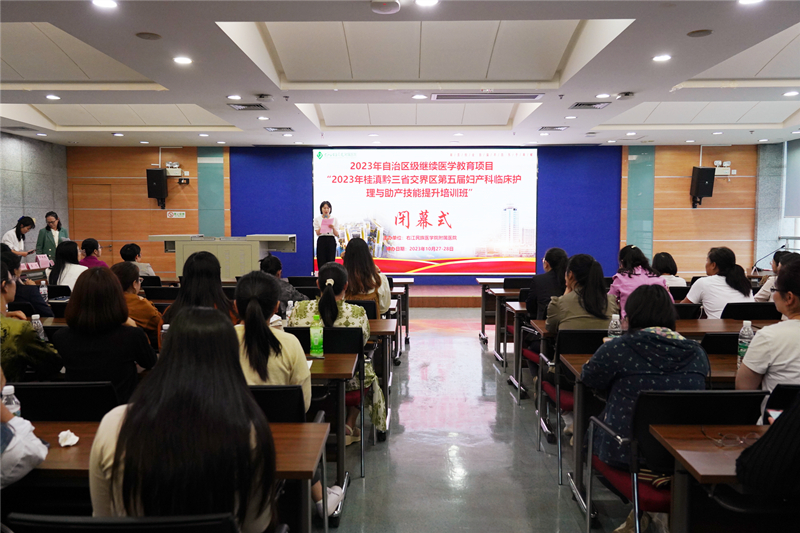 27日下午,培训班举行开班仪式,临床医学院(附属医院)护理部副主任顾亚丽在开班致辞中表示,此次培训班搭建起了桂滇黔三省交界区护理领域的合作与交流平台,建立起了相互支持和合作的良好机制,为共同探讨和解决护理工作中面临的问题和挑战,不断提高妇产科临床护理与助产技术能力提供了良好平台,对推动桂滇黔三省交界区卫生健康事业的持续发展发挥了积极作用。