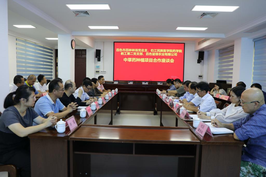 最后,三方对合作种植中草药进行了广泛交流,达成重要共识:一是中草药种植基地为百林林场,中草药套种于林下;二是百林林场负责组织中草药种植,并进行日常护理、除草、施肥、防治虫害和采收;三是药学院教工第二党支部负责中草药种植的关键技术指导;四是百色堃垠农业有限公司负责提供中草药树苗或种子(菌种),参与种植技术指导,并且收购本项目收获的产品;五是本项目的种植、研究所需成本,产品销售的方式和价格由百林林场和百色堃垠农业有限公司友好协商处理,药学院教工第二党支部不参与其中。