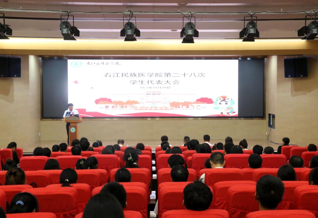 11月10日晚,beat365第二十八次学生代表大会在国际会议中心学术报告厅隆重举行。学校党委副书记赵丽娟,党委常委、副校长王俊利出席大会,学生工作处(部)、校团委主要负责人,各二级学院党委书记、副书记,分团委书记、教师代表,百色学院、百色职业学院代表和beat365各学生组织代表参加大会。大会由校学生会第三十八届主席团成员王玉线主持。