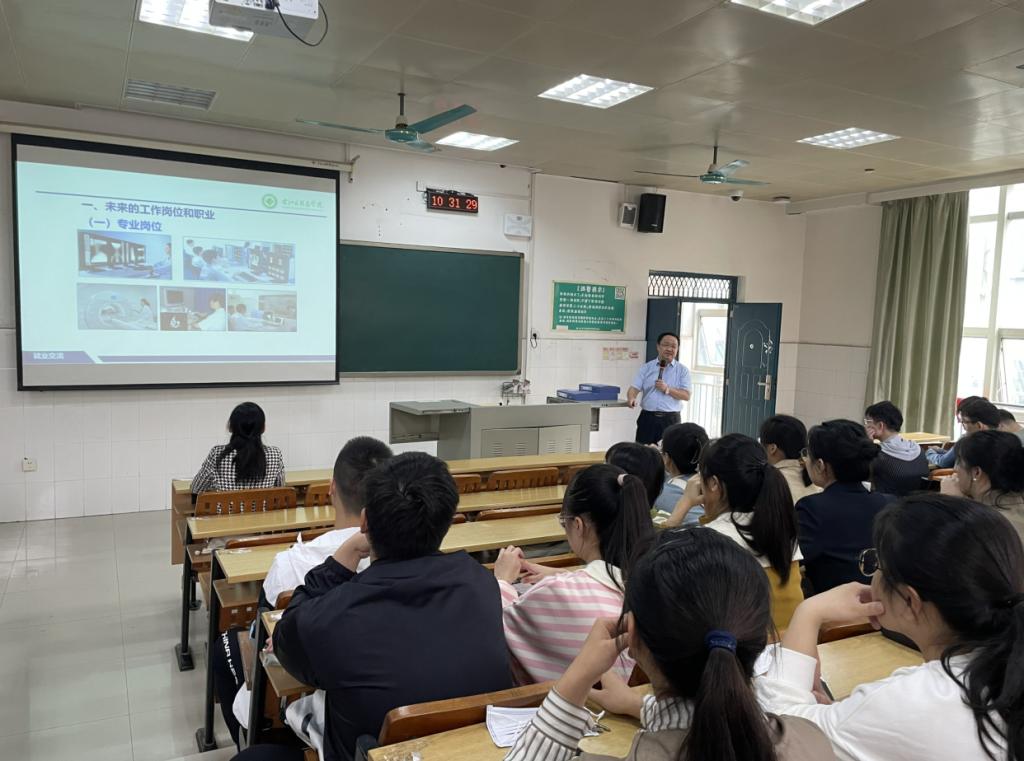 会上,黄德尤主任从未来工作岗位和职业的分析、住院医师规范化培训、继续深造学习等三个方面,就医学影像学专业未来的就业方向以及当前的就业形势进行深入分析。他鼓励同学们尽早确定职业目标、完成职业生涯规划以积极应对就业季的压力和挑战。李保生主任就当前毕业生的就业形势、就业意愿以及就业困难三个方面内容进行系统分析,并鼓励同学们应该做到“先就业再择业”、把握好一切机会积极就业。