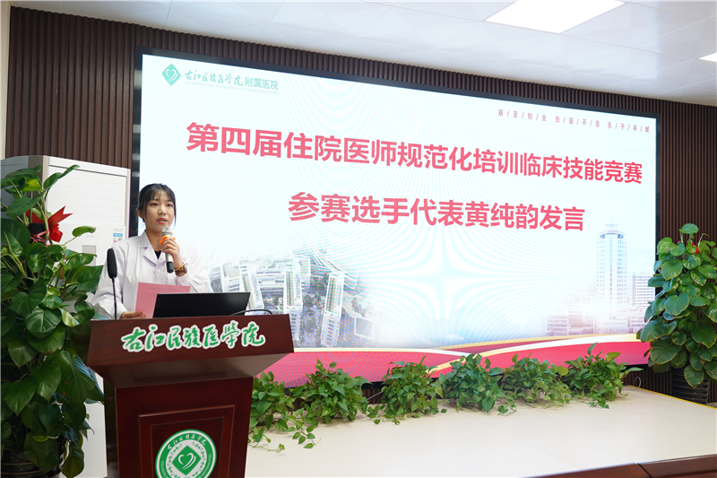 上午8时,第四届住院医师规范化培训临床技能竞赛在临床实验教学中心7楼正式开幕,右医附院潘征副院长致开幕词。潘征副院长表示,竞赛要坚持问题导向,压实各级责任,总结培训中的薄弱环节和问题,及时研究解决,达到“以赛促学,以赛促教,以赛促训,以赛促建”的目的,促进住培质量和内涵的全面提升。随后,黄庆副教授、核医学科住培学员黄纯韵分别代表裁判和参赛选手进行发言。