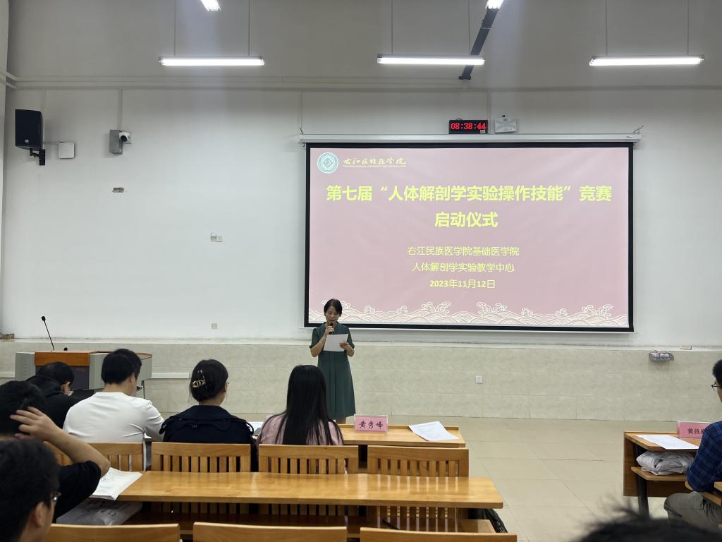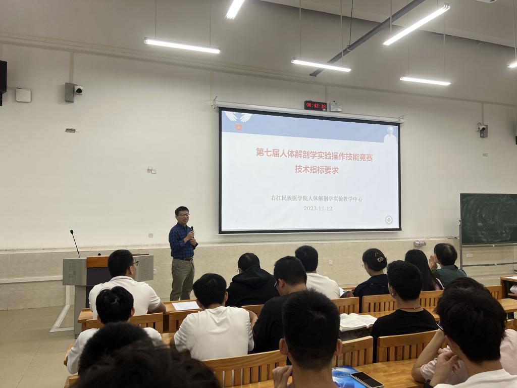 为进一步提升学生解剖操作技能水平,11月12日上午,由基础医学院主办、人体解剖学实验教学中心承办的第七届“人体解剖学实验操作技能”竞赛启动仪式在百东校区守正楼C107教室举行。人体解剖学实验教学中心主任黄秀峰、副主任黄昌盛,人体解剖学实验教学中心全体教师以及各竞赛小组指导教师和196名参赛学生参加启动仪式。