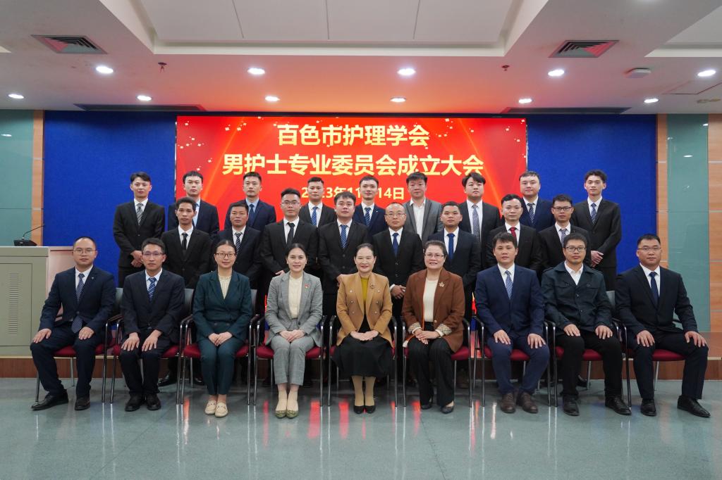 为促进百色市男护理工作者在专业领域快速发展,积极推动全市男护士队伍的健康成长,全方位体现男护士专业价值,推动男护士工作高质量发展,2023年11月14日晚,百色市护理学会男护士专业委员会成立大会在我院外科五楼大教室召开,百色市护理学会理事长、beat365英国官方网站护理学院黄芳艳教授出席大会并致辞,百色市护理学会副理事长、我院护理部主任陆柳雪教授,百色市护理学会监事长、我院监察室主任刘芳印教授和百色市护理学会男护士专业委员会全体委员参加会议。大会由百色市护理学会秘书长、我院护理部副主任顾亚丽主持。