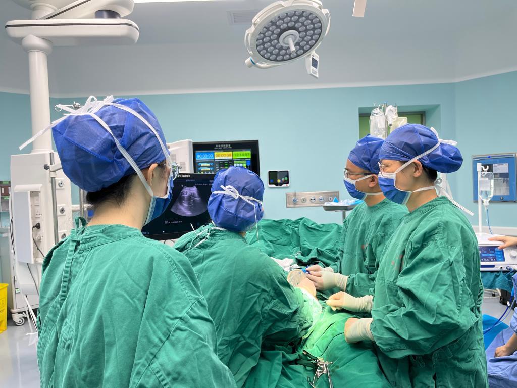我院妇科二病区梁月秀主任团队为患者施行超声引导下次全子宫切除术后宫颈肌瘤微波消融术