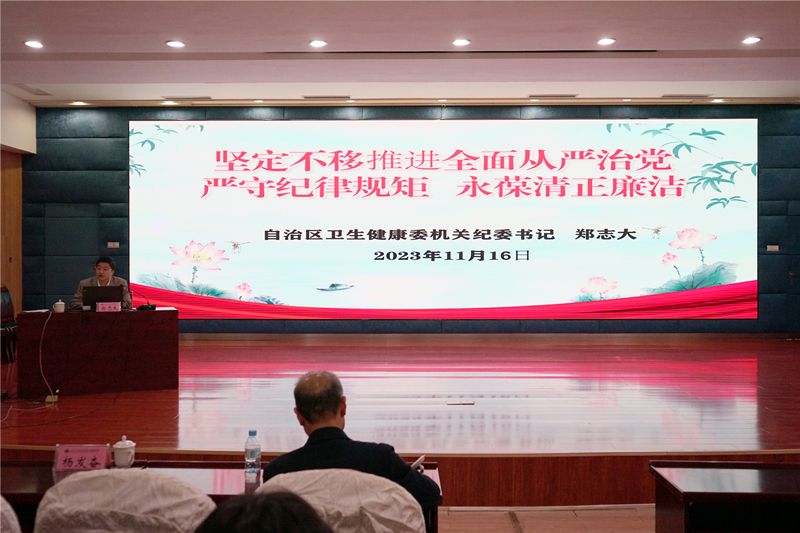 自治区卫生健康委直属机关党委副书记、机关纪委书记郑志大在讲授专题讲座
