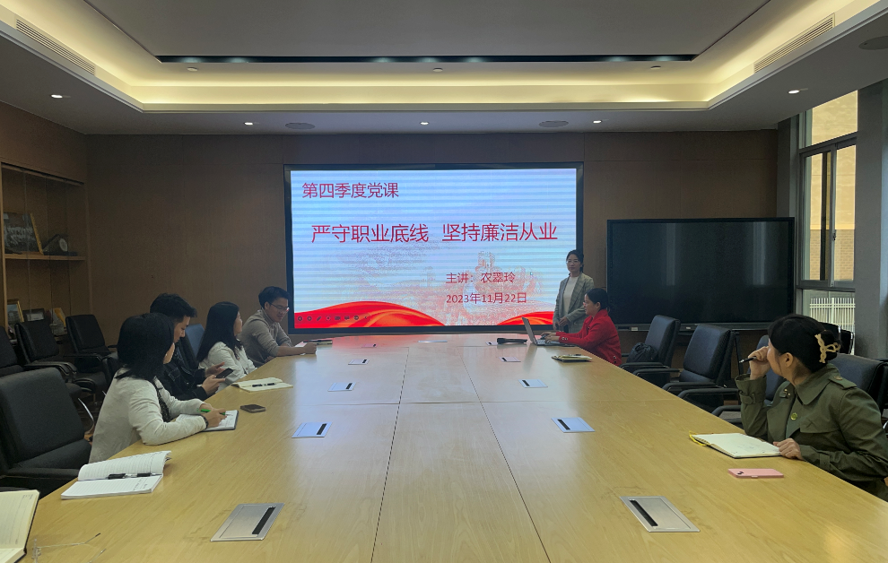 接着,党支部组织委员农翠玲为全体职工讲授了“严守职业底线,坚持廉洁从业”为主题的党课,从面对诱惑时刻保持警惕,面对权力时刻保持清醒,面对幸福时刻保持珍惜,面对条例时刻保持敬畏四个方面,让大家在思想上受到一次深刻的警醒和教育。
