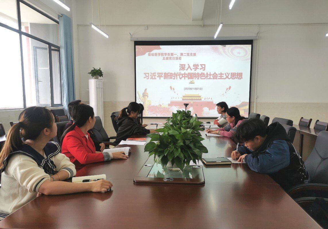 2023年11月22日下午, 基础医学院党委学生第一、第二党支部在百东校区创新楼B401会议室组织开展2023年11月份主题党日活动。