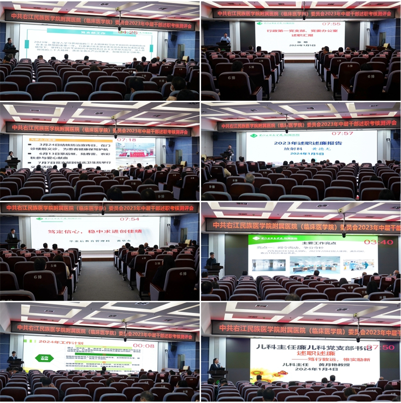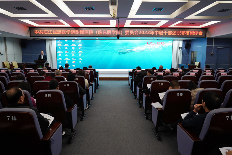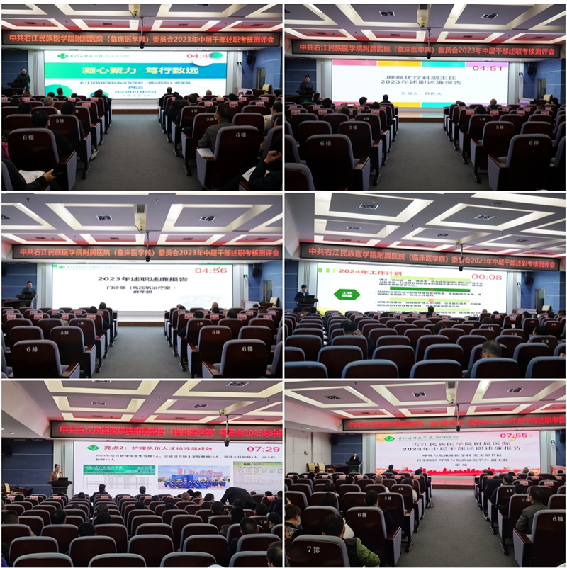 在听取大家的述职述廉后,我院党委书记林栩作点评讲话。他充分肯定了全院各党支部、各部门、各科室一年来卓有成效的工作,并代表医院党政领导班子对全体中层干部提出了新的希望和要求。林栩书记指出,中层干部年终考核述职是对干部管理水平、执行能力和工作成绩的一次检阅,也是提高科室负责人业务管理、行政管理、运营管理、目标管理能力的重要举措。希望各科室负责人、党支部书记通过述职,要高度重视科室管理和学科建设等工作,认真审视自身和科室存在的问题,相互学习借鉴,取长补短,不断提升管理效能和履职能力,为2024年开好局起好步打好基础,扎实推进“一院两区”高质量发展。林栩书记强调,2024年是贯彻党的二十大精神的关键之年,是推动“十四五”规划目标任务全面落地的攻坚之年,全体党员干部职工要坚持党建引领,强化担当作为,坚守廉洁和安全底线,树立全院“一盘棋”思维,紧紧围绕学校“更大申博”目标任务、医院“十四五”规划、国考指标、三级综合医院评审及医教研工作要求,以问题为导向,切实增强解决瓶颈、服务一线的能力,完善科室发展目标和发展规划,研究部署重点工作任务,团结协作,合作共赢,以加强学科建设带动医疗服务水平提升,在拓展新业务、开展新技术、服务社会等方面再创新佳绩,更好满足桂滇黔三省交界区各族人民群众的健康需求。