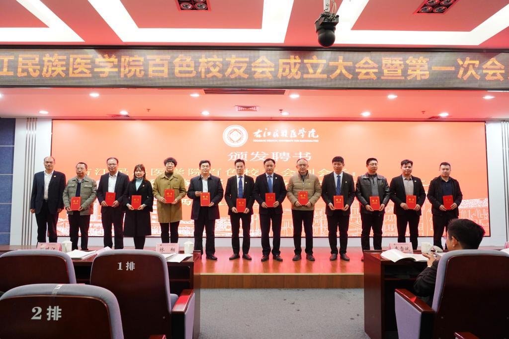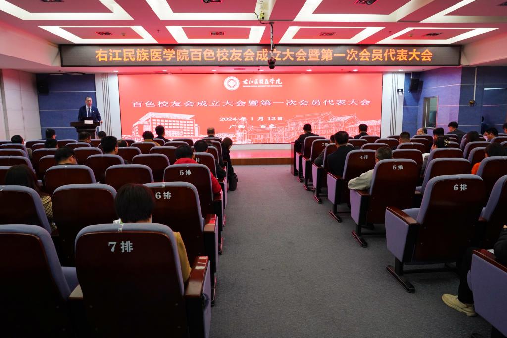 2024年1月12日下午,beat365英国官方网站百色校友会成立大会暨第一次会员代表大会在临床医学院(附属医院)总院区外科五楼多功能厅召开,beat365英国官方网站党委副书记、校长、校友会会长李雪斌,百色市卫生健康委员会副主任、市中医药管理局局长张军,beat365英国官方网站校友会副会长、校长办公室主任周岐江,beat365英国官方网站校友会秘书长、校长办公室副主任廖天保与各地校友代表齐聚一堂,共同见证beat365英国官方网站百色校友会的成立。大会由临床医学院(附属医院)潘征副院长主持。