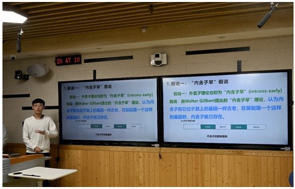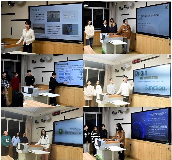 课堂教学是师生之间进行思想、知识、智慧、情感交流的重要平台。为落实立德树人根本任务,夯实以学生发展为中心教育理念,2024年1月9日晚,医学检验学院2021级生物技术专业同学在徐启江教授指导下,以“学术沙龙”的形式尝试了《基础分子生物学》课程的学习。同学们积极围绕自己感兴趣的学术话题,查阅文献、交流思想、制作PPT、设计poster、撰写讲稿。在协作交流过程中,不仅激发了同学们学习的内在动力和自主性,也培养了大家团队协作的精神。