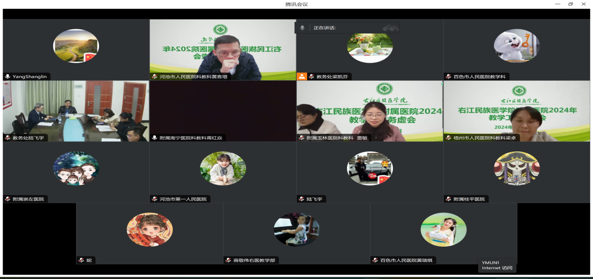 为全面总结beat3652023年附属医院临床教学工作和谋划2024年临床教学工作思路,1月12日下午,教务处通过腾讯会议组织召开2024年附属医院教学工作务虚会,教务处处长韦忠恒,各附属医院教学部(科)负责人和教务处实践教学管理科全体人员参加本次会议,共同聚焦“更大申博、争创实践教学同质化不断提升”目标,围绕2024年附属医院教学工作进行“头脑风暴”。会议由教务处副处长杨尚霖主持。