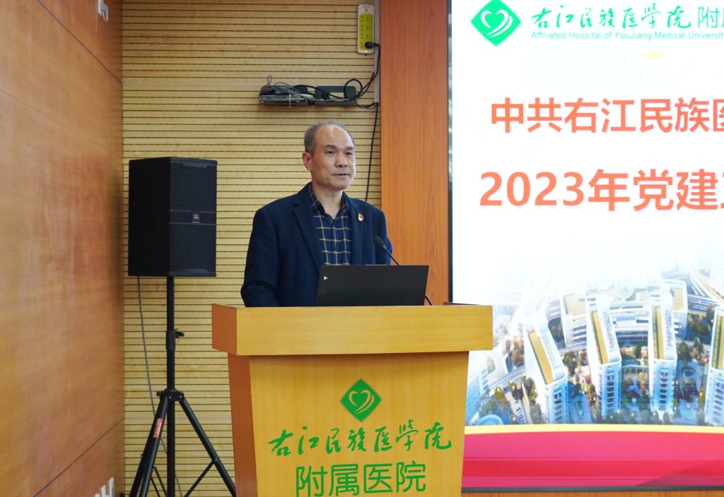 会上,院党委林栩书记首先作了题为《接续奋斗 砥砺前行 党建领航 推动医院高质量发展》的2023年医院党建工作报告,总结了一年来医院党建工作取得的成绩,深入分析当前医院发展面临的形势和挑战,明确了2024年医院党建工作的总体思路和目标任务。他强调,2023年,在学校党委的坚强领导下,医院以习近平新时代中国特色社会主义思想为指导,全面贯彻落实党的二十大精神,按照“以高质量党建促进医院高质量发展”的工作目标,坚持以“一院两区”同质化管理、差异化发展建设举措和基层党组织建设提质增效工程为抓手,着力夯基础、求突破、勇争先,通过“六化六强”党建工作法为抓手推动基层党建落地见效,持续推动基层党建全面进步、整体提升,保证了以高质量党建促医院高质量发展。