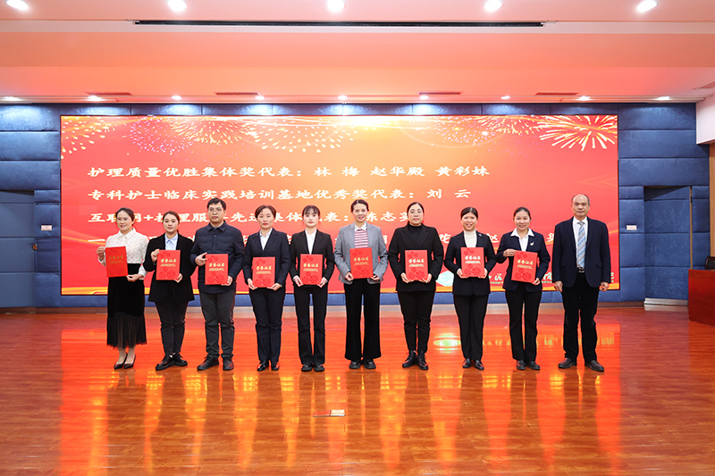 临床医学院(附属医院)韦忠恒院长最后在总结讲话中强调,全院护理人员在2023年不分昼夜、不辞劳苦,始终以饱满的状态,在平凡的岗位上继承和发扬南丁格尔“不畏艰险、甘于奉献、救死扶伤、勇于献身”的人道主义精神,践行着“根植老区为人民,医者患者一家人”理念,医院护理事业在护理质量、服务态度、专业技能等各方面都取得了长足进步,赢得了同行和社会的广泛赞誉。韦忠恒院长表示,医院目前正处于“一院两区”高质量发展的起步阶段,也是规模扩张与质量提升并存的关键时期,希望全院护理工作者首先要提高政治站位,树立忧患意识,结合2024年任务目标,围绕学校第八次党代会的会议精神,进一步加强护理专科的建设,打造桂西一流、省内有重要影响力的“医教研协同发展型”学科。其次要继续探索“一院两区”同质化管理模式,创建科室品牌、医院品牌,稳步推进“互联网+护理服务”工作,深入推进优质护理服务 ,提高患者满意度,提高医院的社会效益。最后要重视DRG付费改革工作,积极响应国家政策,高质量推进三级医院等级复审工作,加快迈出“六位一体”协同发展的“一院多区”医疗集团新征程的步伐,为实现医院“一院多区”跨越式发展以及学校早日建成区域性高水平医科大学而努力奋斗。