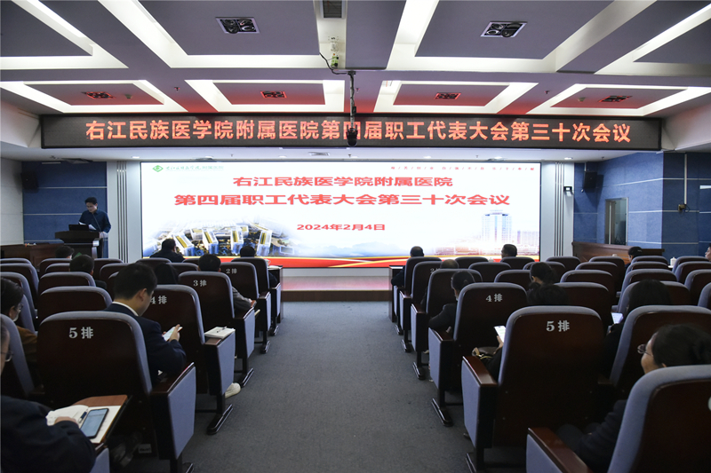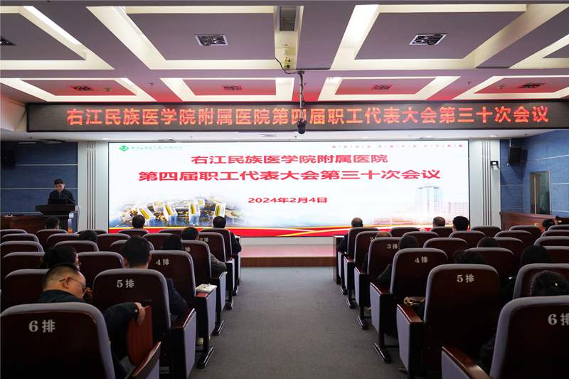 2024年2月4日下午,临床医学院(附属医院)第四届职工代表大会第三十次会议在总院区外科五楼多功能厅隆重召开,临床医学院(附属医院)党委书记林栩、院长韦忠恒、党委副书记许靖、陈文成,副院长邓益斌、潘征,纪委书记梁楚晗、副院长蓝常贡、总会计师覃灵艳和医院第四届职工代表大会正式代表参加会议。会议由陈文成主持。