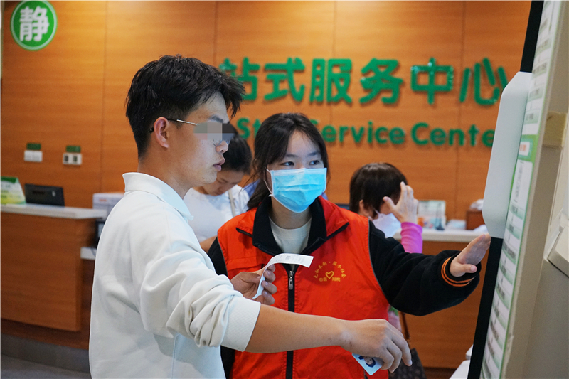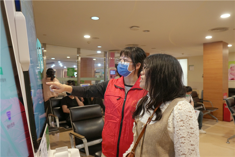 右医附院志愿者帮助就诊人员挂号、打印报告结果