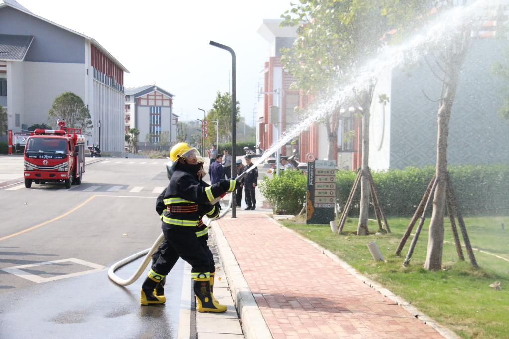 培训使用消防水枪。