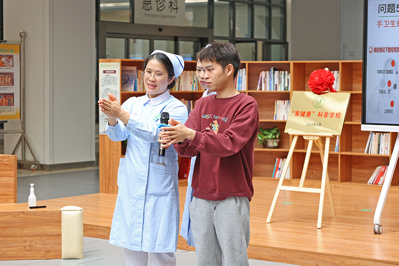 与会领导共同为中华护理学会“全国护理科普教育基地”和“家健康”科普学校揭牌。仪式结束后,“家健康”科普学校随即开展了第一期科普讲堂,邀请了临床医学院(附属医院)百东院区心血管内科副主任韦宝敏,普通外科护士长覃花杏两位专家,为患者和家属带来了《冠心病的防治》《诺如病毒知多少》两场健康科普知识分享,指导群众科学识别冠心病,掌握健康的生活习惯,同时指导群众学会七步洗手法、居家消毒法等,科学预防诺如病毒,受到了群众的一致好评。