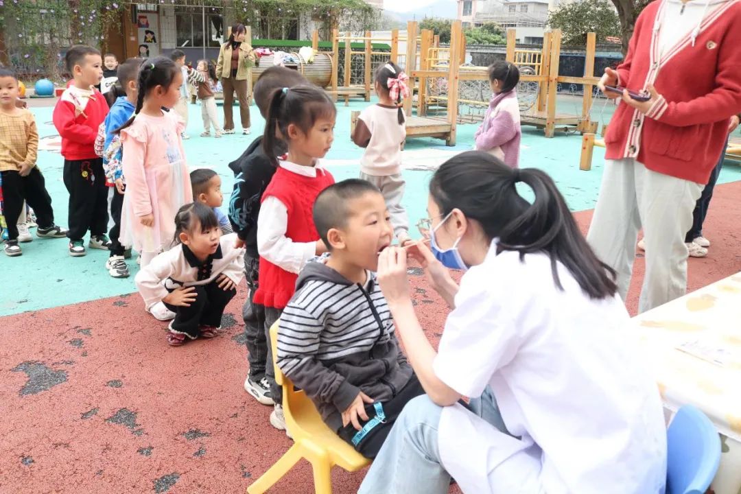 当天上午,团队一行还来到百色市右江区四塘镇中心幼儿园,开展“健康口腔 ,健康体魄”口腔健康宣教及口腔健康检查活动,积极向师生宣传牙齿保健知识和牙病防治知识,增强幼儿的自我口腔保健意识、树立爱护牙齿的理念。