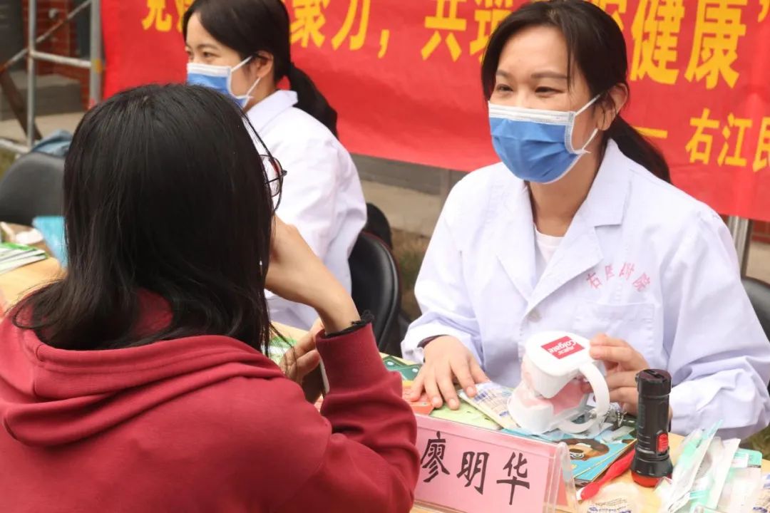 口腔医学院党委廖明华书记带领右医附院口腔科专家来到beat365英国官方网站百东校区开展惠民义诊活动。在义诊过程中,专家团队耐心为同学提供咨询诊疗服务,解答常见口腔疾病的预防措施和日常口腔保健知识,给出具体的诊疗建议和治疗方案,帮助学生及时掌握自己的口腔健康状况,增强同学们对口腔疾病预防的意识。活动中还设置有奖问答环节,增加了活动的趣味性。