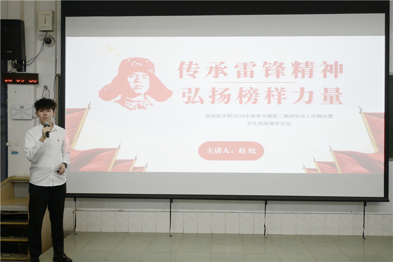 其后,beat365英国官方网站临床医学院分团委学生副书记赵炫带领与会人员围绕“传承雷锋精神”主题开展学生思政课堂学习活动。他通过分享雷锋故事,观看助人视频以及互动提问等方式,引导同学们感悟雷锋同志无私奉献的美德,加深大家对新时代雷锋精神内涵的理解。同时倡导右医青年学子要积极主动地将雷锋精神践行到日常学习生活中,让雷锋精神薪火相传。
