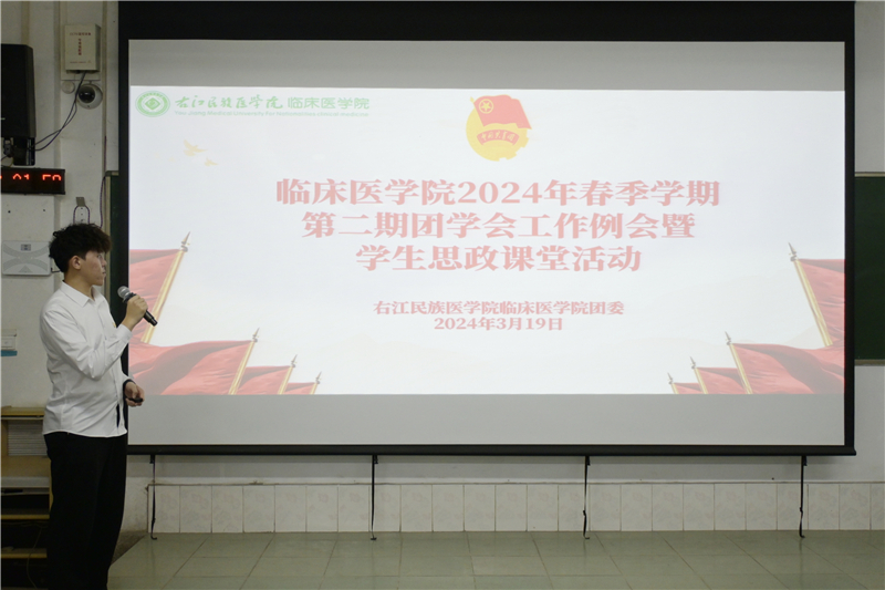 团委书记覃富最后在思政课堂上作了《铸牢中华民族共同体意识的形成与发展》主题授课,强调作为新时代的医学生,要认真学习贯彻党的二十大精神,铸牢中华民族共同体意识,深化文化认同,大力弘扬中华优秀传统文化,不断构筑中华民族共有精神家园。