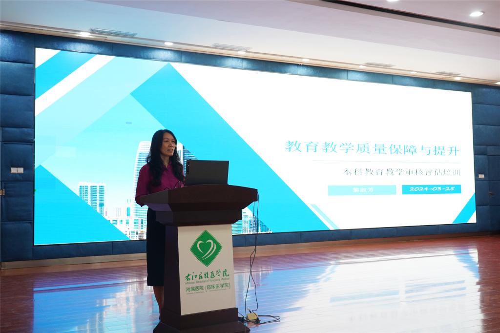 beat365英国官方网站高等教育研究所黎淑芳所长在会上作教育教学质量保障与提升专题培训。