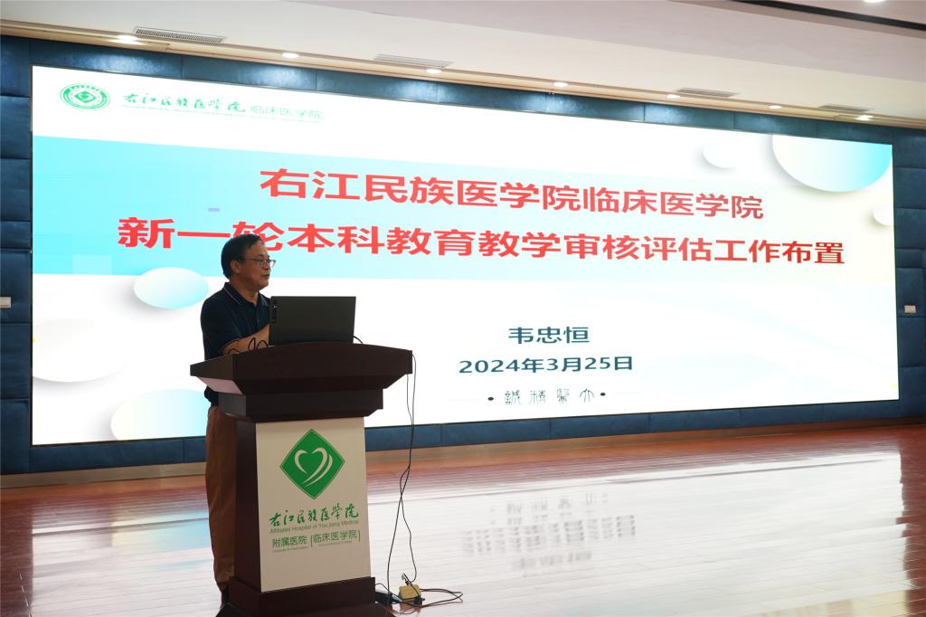 beat365英国官方网站临床医学院(附属医院)韦忠恒院长作全院新一轮本科教育教学审核评估工作部署。