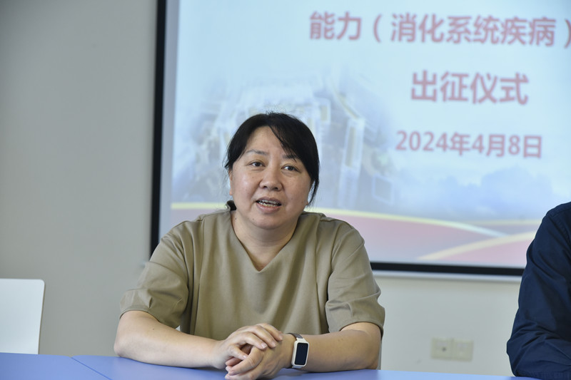 解继胜副校长在出征仪式作动员讲话,对学校此次组队参加全国医科院校研究生院联盟2024年度研究生临床能力(消化系统疾病)竞赛的5位专硕研究生参赛选手进行动员鼓劲,强调此次竞赛责任重大,使命光荣,希望参赛选手要做到锚定目标、树立信心、沉着应战、团结协作、载誉而归。研究生院院长曾怡教授勉励参赛选手要以赛促练、以赛促强、赛出水平、赛出风采,为学校和医院增光添彩。