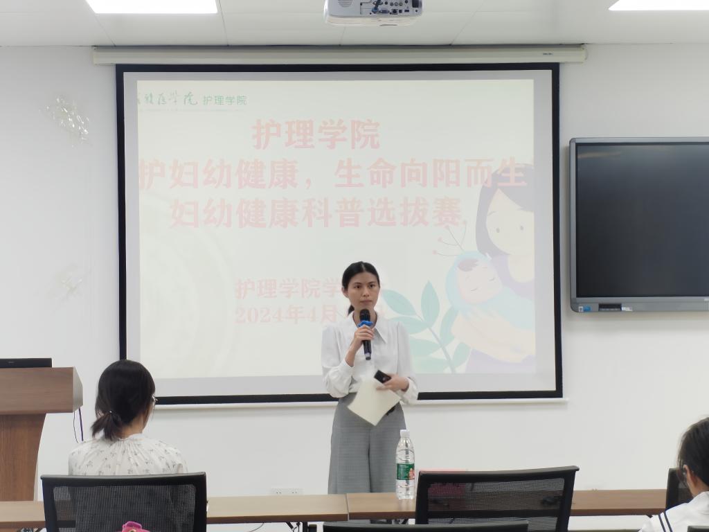 为全面贯彻落实党的二十大精神,弘扬以人民健康为中心的理念,进一步普及妇幼健康科普知识。护理学院于4月15日和4月17日分别在百城校区护理学院211会议室与百东校区守正楼A-104教室开展“守护妇幼健康,生命向阳而生”妇幼健康科普选拔赛,本次比赛邀请到护理学院妇儿护理学教研室副主任李雪静博士、学生科韦欣言、黄祯雄、岑秋凤作为本次比赛评委。