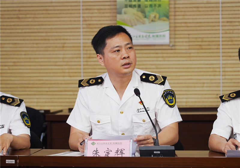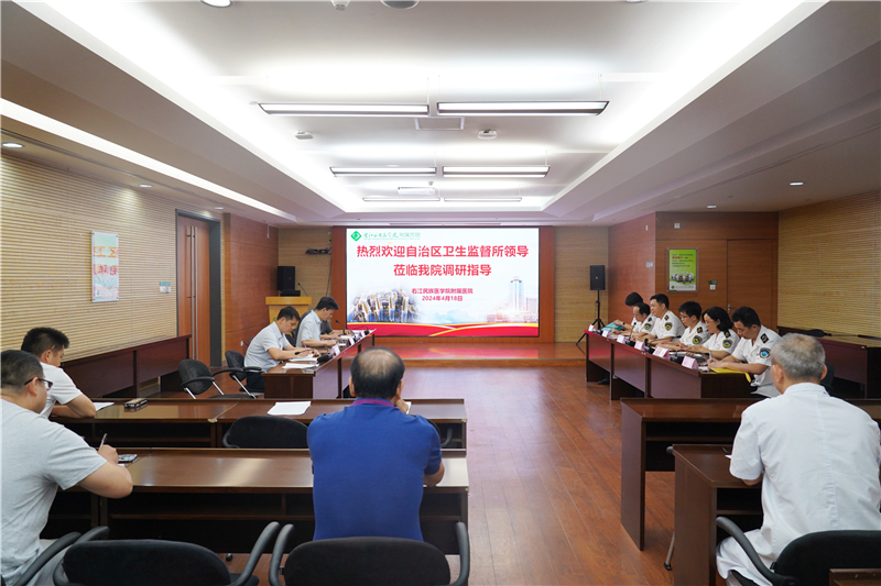 4月18日上午,自治区卫生监督所副所长(主持全面工作)朱定辉带队到右医附院进行调研指导,并在总院区门诊六楼会议室召开座谈会。右医附院副院长蓝常贡,医务部、护理部等相关职能部门负责人参加会议。会议由朱定辉主持。