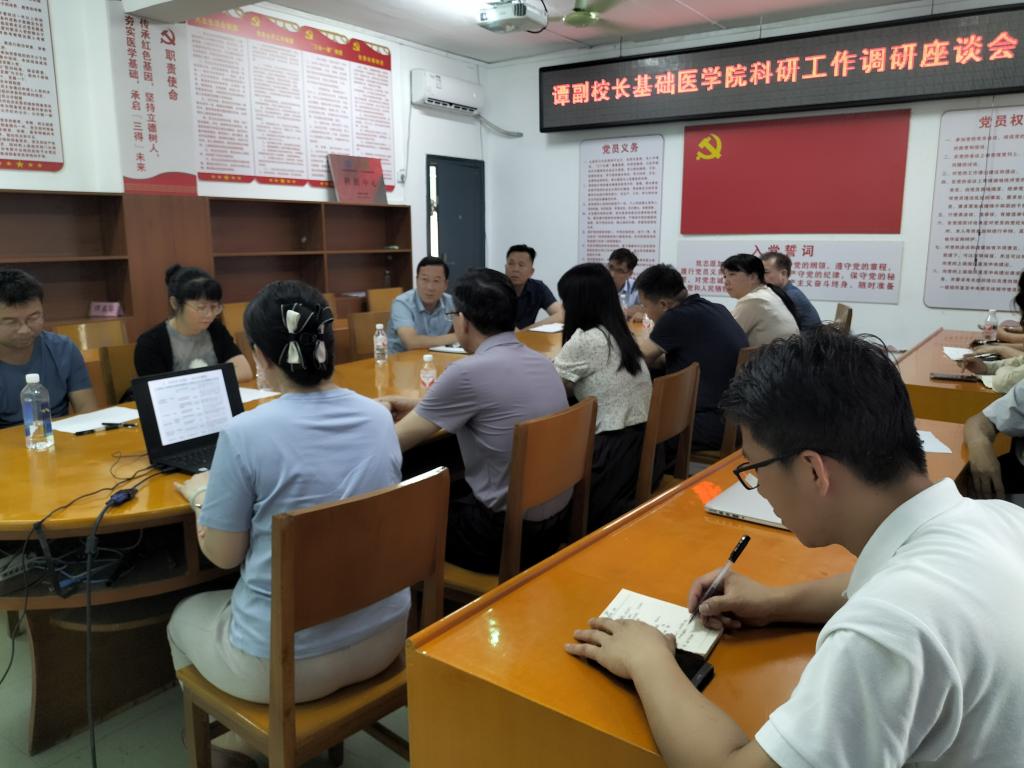 4月19日下午,学校党委常委、副校长谭盛葵在科技处处长黄忠仕的陪同下到基础医学院开展科研工作调研,基础医学院党委书记宾晓芸,院长黄衍强,基础医学各二级学科、学术带头人参加了调研座谈会。