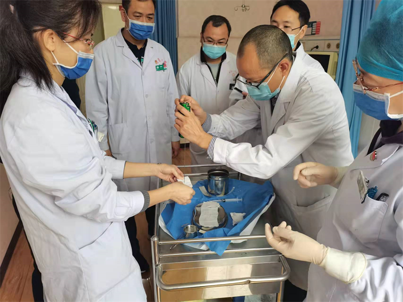 近年来,该支部以打造“服务型党支部”为目标,依托全国腹膜透析培训示范基地、全国县级医院血液净化培训基地的优势,与百色市及周边地区医院开展了系列联建活动,开创了“结对共建保健康”的党建工作新模式。两年来,该支部组织党员深入全市12个县(市、区),与基层医疗机构开展联建工作,先后帮助全市12县(市、区)成立血透室,让肾病患者在“家门口”就能进行透析,目前已有约800名慢性肾脏病患者可在当地医院进行血液透析治疗,极大缓解了患者的负担。该支部还发挥区域性高水平医科大学附属医院肾脏病学的高端技术优势,与贵州省罗甸县人民医院结对共建,指导罗甸县人民医院肾内科成功开展了首例超声引导下肾穿刺活检术。