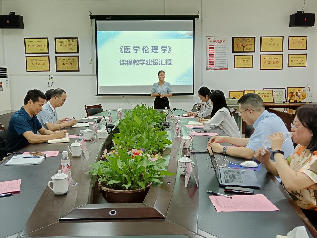 在交流展示环节,先由广西医科大学人文社会科学学院杨小钵博士就《医学伦理学》课程建设、党建引领学科建设、教学科研发展、教研室建设等方面进行全方位介绍。接着,韦宇宁老师围绕《医患沟通学》课程的一流课程建设、课程思政建设和虚拟教研室建设等各方面的思路做法向大家详细介绍。随后,beat365马克思主义学院张琴老师围绕《医学伦理学》课程的建设为对方进行了介绍。双方聚焦《医学伦理学》和《医患沟通学》两门课程,从专题内容设计、课堂教学模式改革、实践教学等方面进行深入交流研讨。双方就今后基层教学组织建设、项目申报、学科建设以及教育教学审核评估等多方面的合作达成意向。