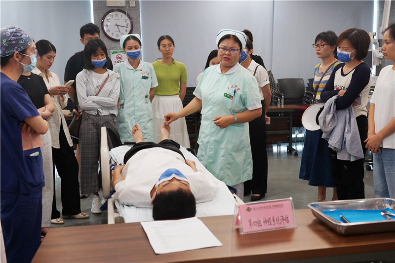 神经内科二病区黄曲云护士长指导参会人员进行神经系统评估