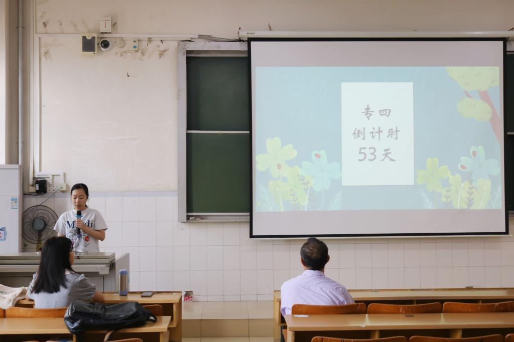 为激发学生的学习热情和动力,推动考研考级考证促学风建设,4月24日下午,国际语言文化教育学院在5栋综合楼604教室举办了“三考”促学风建设系列活动之英语专四专八考试经验分享会。会议邀请2023级翻译专硕研究生的张晴晴、徐颖珊和2021级英语本科生黄霞等三位学生代表分享考试经验,学院全体本科生参加了此次会议,会议由劳进同学主持。