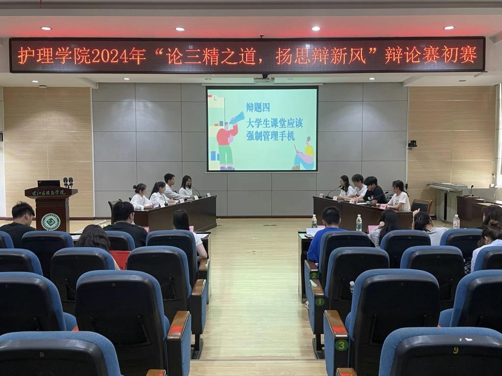 为深入学习领会习近平总书记关于青年工作的重要思想,同时推进护理学院“精心、精湛、精美”的护理文化建设,护理学院于4月20日和4月27日分别在百城校区5号教学楼101学术报告厅、护理学院211会议室和百东校区守正楼C207教室开展“才思争鸣,‘权’听你辩”主题辩论赛的初赛与决赛。