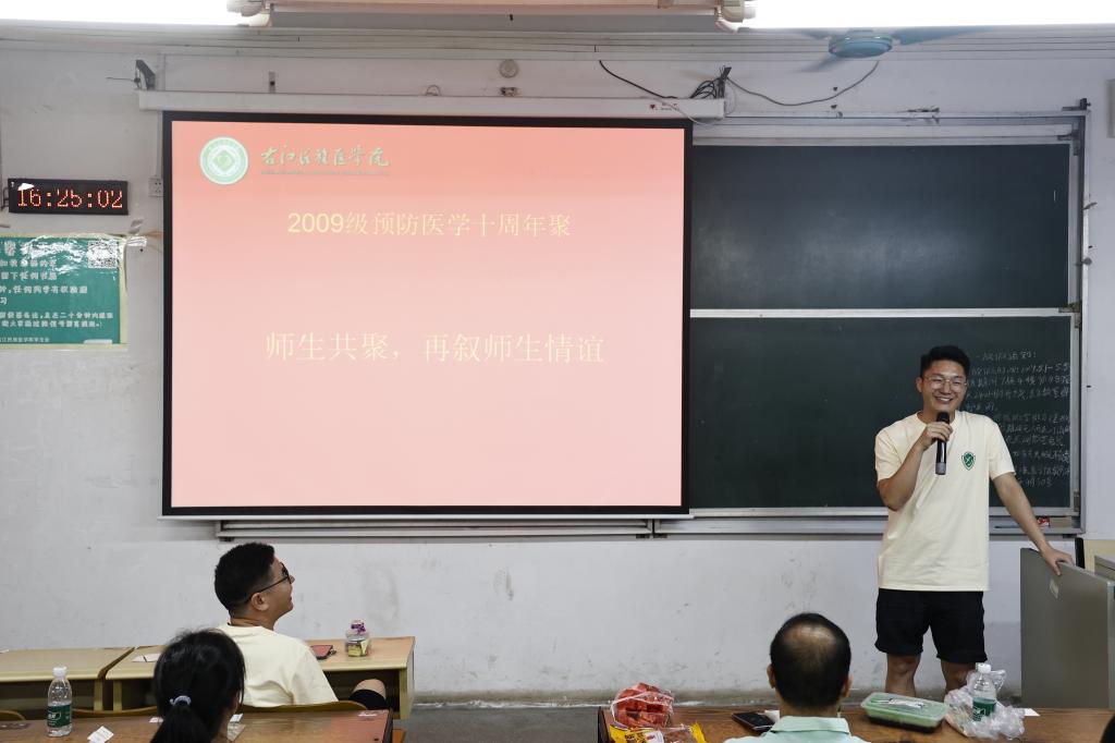 当天下午3时,校友们在百城校区4栋201教室开了一个特别的班会,这是相隔十年的再聚首。昔日的同学们在同一个教室中,感受着熟悉而又陌生的氛围,回忆着曾经的点点滴滴。公共卫生与管理学院党委书记李常应出席了班会,并在会上用铿锵而有力的声音开始点名,每一个名字都让在场的校友仿佛回到了大学时代,想起了那段纯真的岁月。他们的脸上浮现出了温暖的微笑,心中涌起了一股莫名的感动。看着母校的变化,他们既感到惊叹又感到自豪。
