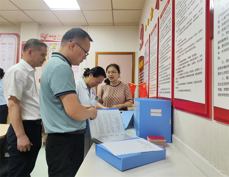 右医附院肾内科党支部自2022年3月成功入选第三批全国党建工作样板支部培育创建单位以来,学校党委高度关注支部建设动态,多次深入现场对支部工作进行指导。此次现场检查主要就建设期两年来对右医附院肾内科党支部各项成果进行调研,交流党建工作经验,同时深入自查存在的问题与短板,并作进一步完善指导。