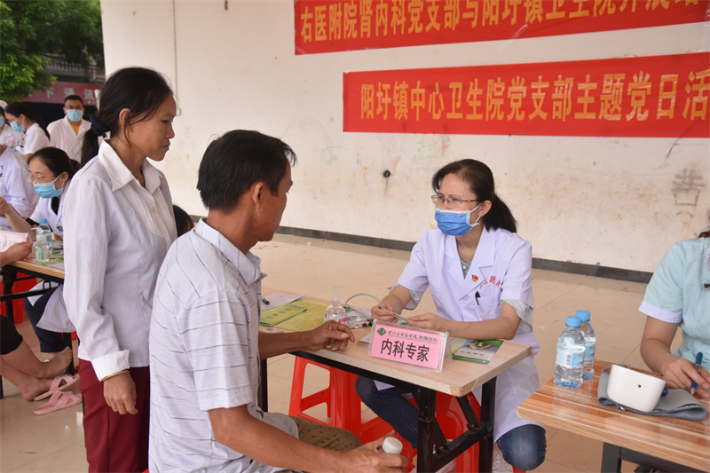 黄美英在百色市阳圩镇为当地居民义诊