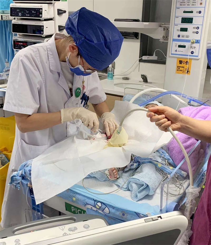 黄美英在为患儿进行检查治疗
