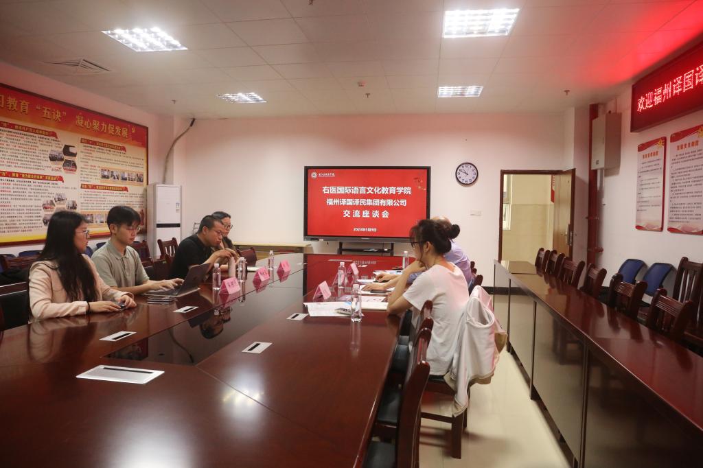 5月9日,国际语言文化教育学院邀请福州译国译民集团有限公司副董事长林世宾一行来院开展校企合作座谈交流活动。国际语言文化教育学院副院长李培隆,MTI教育中心副主任梁宇和翻译专业教研室教学秘书梁舒旻参加座谈会。