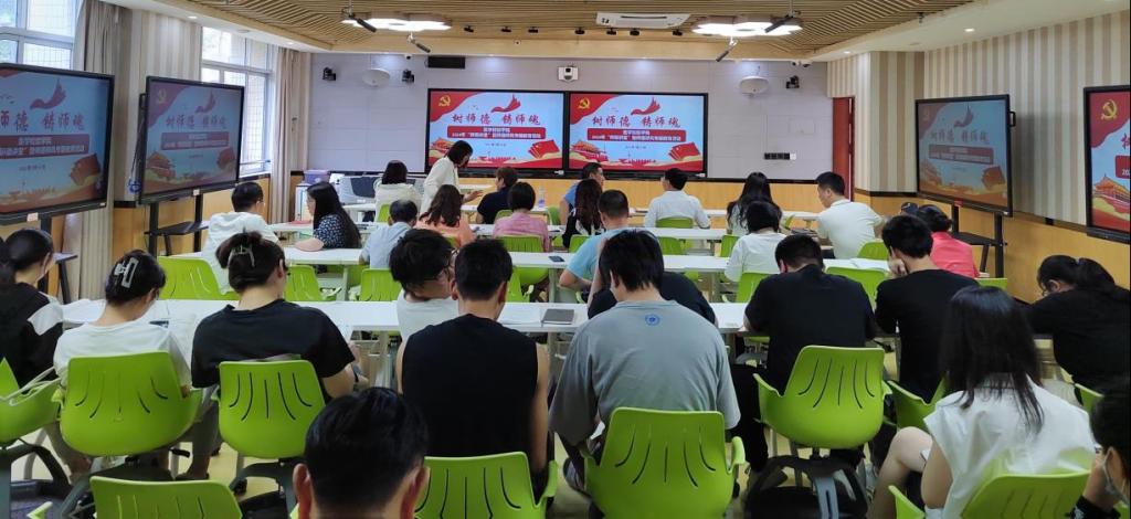 活动中,大家通过唱一首歌曲、听一堂好课、诵一段经典、讲一个故事、谈一番感受“五个一”体会师德的重要和责任。