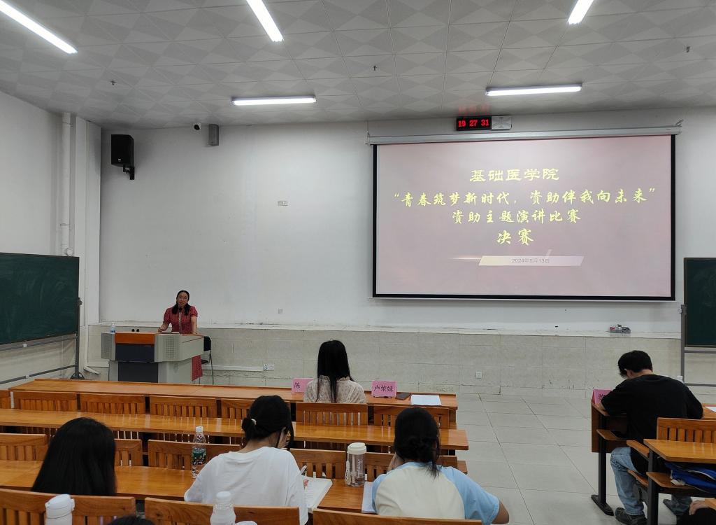 为充分发挥国家资助政策的育人功能,形成“资助—助学—感恩—回馈”的良性育人循环,5月13日下午,基础医学院在百东校区守正楼A107举办了以“青春筑梦新时代,资助伴我向未来”为主题的学生资助演讲比赛。