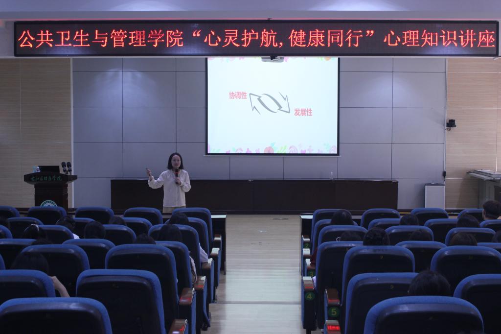 5月24日下午,公共卫生与管理学院在百城校区5栋101学术报告厅举办主题为“心灵护航,健康同行”的专题讲座。本次讲座邀请了大学生心理健康教育教研室林泉老师担任主讲嘉宾,该院共有200名学生聆听讲座。