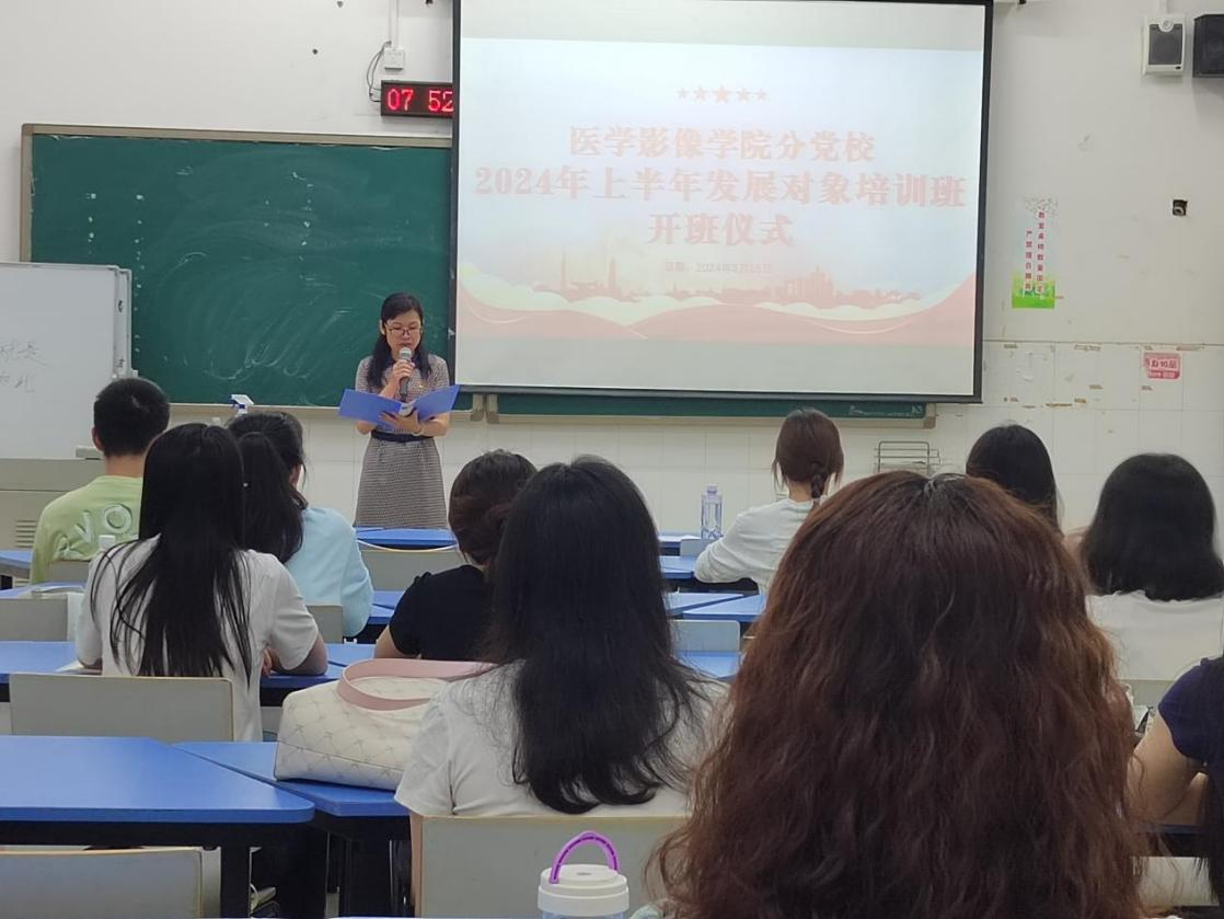 为切实提高学生发展对象的政治素质和理论修养,全面做好党员发展工作,引导党员发展对象坚定理想信念,5月25日至26日,医学影像学院分党校举办了2024年上半年发展对象培训班。来自基础医学院、医学影像学院、口腔医学院、全科医学院等35名发展对象参加此次培训,医学影像学院党委书记李丹出席培训班开班仪式并作讲话。