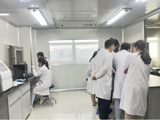 最后,刘筝老师在6栋9-14 PCR实验室分别示范罗氏96实时荧光定量PCR仪和天隆全自动医用PCR分析系统的操作规程并讲解仪器使用注意事项。杨睿睿老师对现场师生进行操作指导和答疑。杨睿睿老师强调,在雨课堂平台完成仪器操作视频学习和测试题的师生方可申请上机考核,本次考核新增天隆全自动医用PCR分析系统的操作考核。