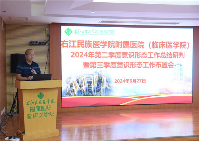 6月27日,临床医学院(附属医院)党委在总院区门诊六楼会议室组织召开2024年第二季度意识形态工作总结研判暨第三季度工作布置会。临床医学院(附属医院)党委陈文成副书记出席会议并作研判点评,临床医学院(附属医院)意识形态办(宣传科)、党办、组织科、监察室、医务部、护理部、教学部、毕业后教育管理科、学科建设与科技创新管理办公室、工会、学生科、团委、收费处、保卫科等相关部门负责人等参加会议。