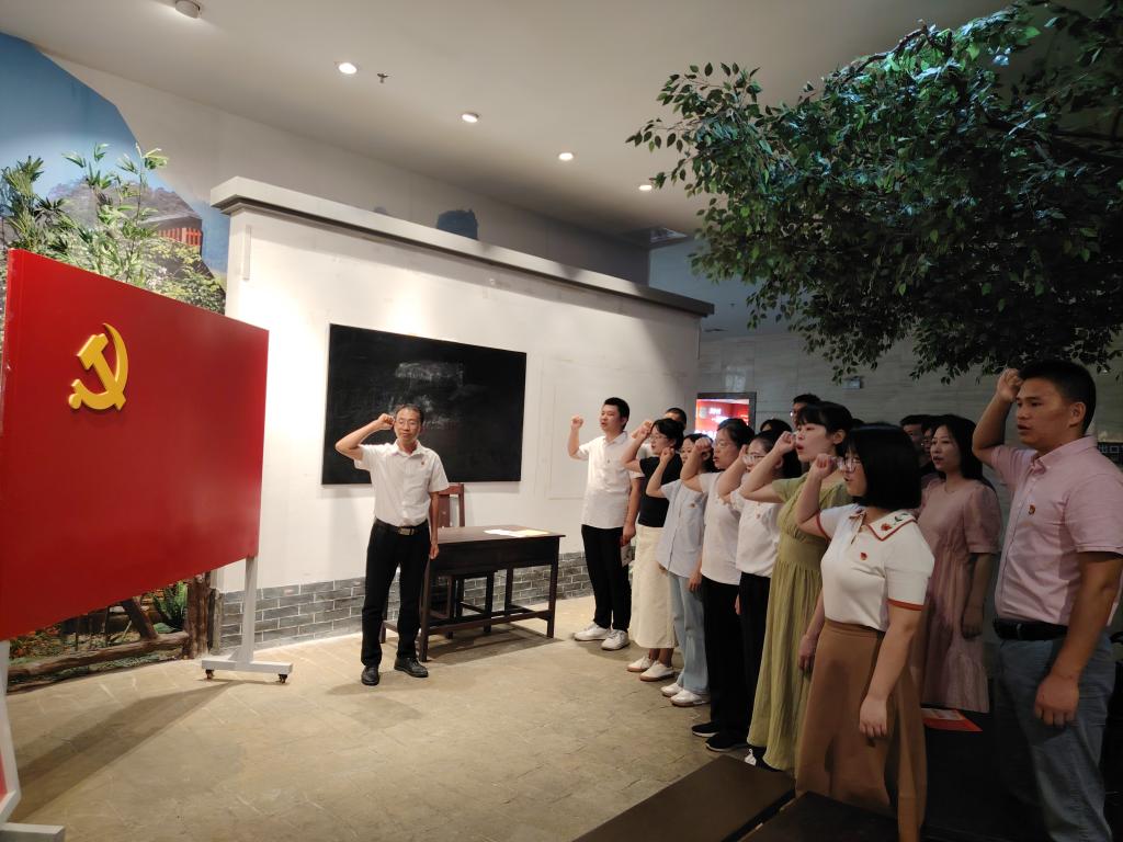 在展示馆二楼,党委组织举行了庄严的重温入党誓词仪式。全体人员举起右手,铿锵有力地重温入党誓词:“我志愿加入中国共产党,拥护党的纲领,遵守党的章程,履行党员义务……”,铮铮誓言在馆内回荡。宣誓结束后,又为今年上半年第二季度入党的同志过“政治生日”,送上精心准备的“政治生日”贺卡。贺卡上准确写着党员同志具体入党的时间,让党员同志们瞬间回到了当初入党的画面,内心充满责任感和使命感。