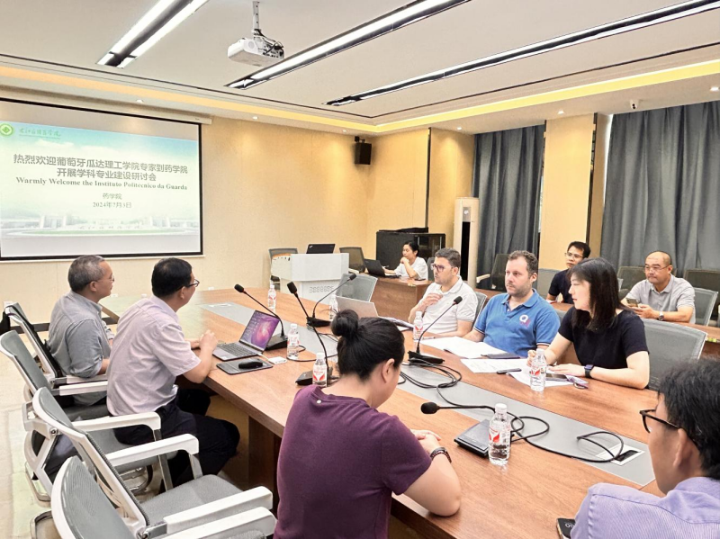 韦贤对葡萄牙瓜达理工学院专家的到来表示热烈欢迎,并详细介绍了药学院的发展历程、人才培养特色、科研成果、对外合作交流等情况。他表示,药学教育经过二十年的发展建设,通过不断深化教育教学改革,提升人才培养质量,形成了自己的办学特色。希望双方充分发挥各自在药学人才培养的优势,共建药学专业(中外合作办学班),实现优势互补、共赢发展。